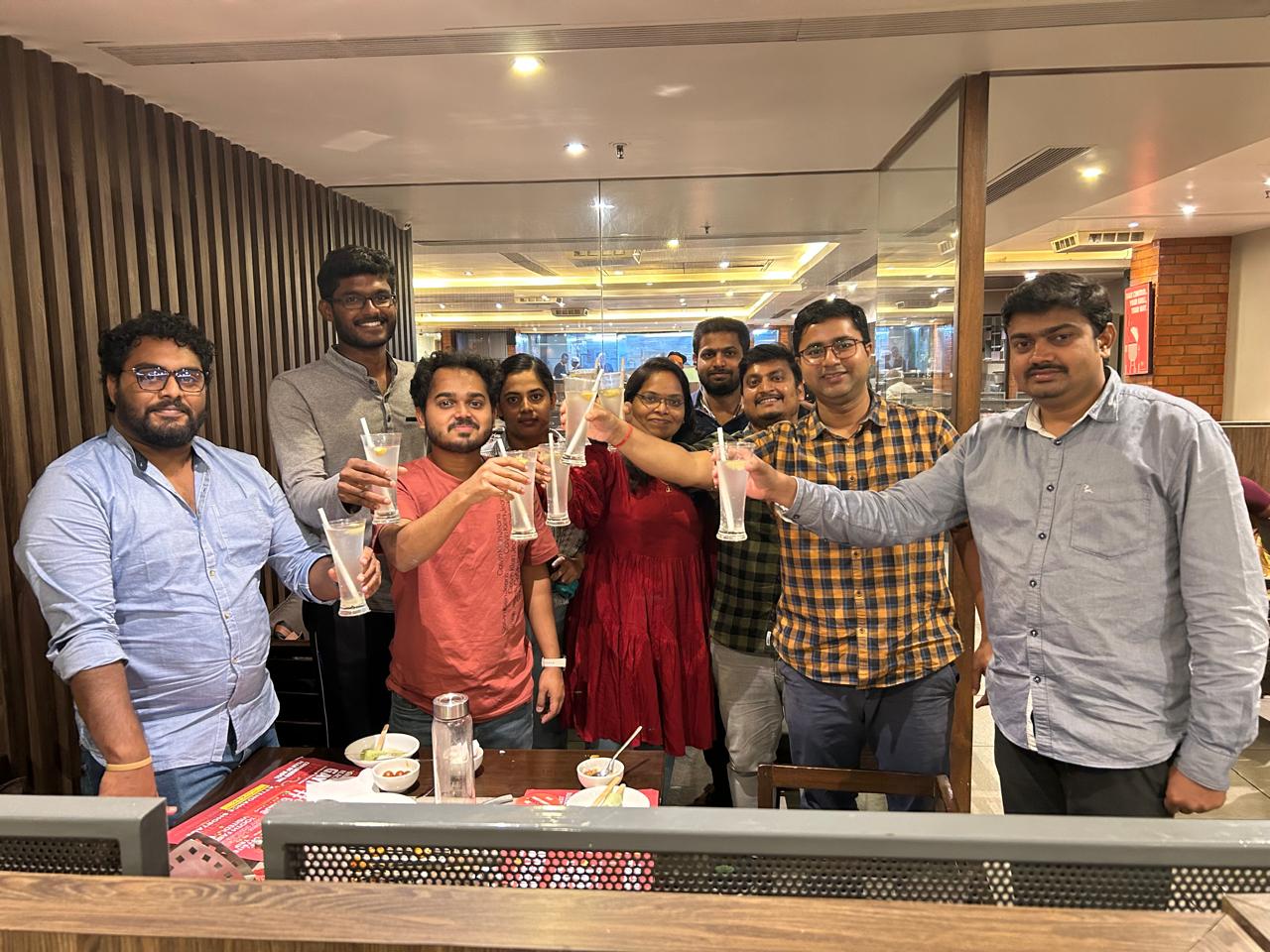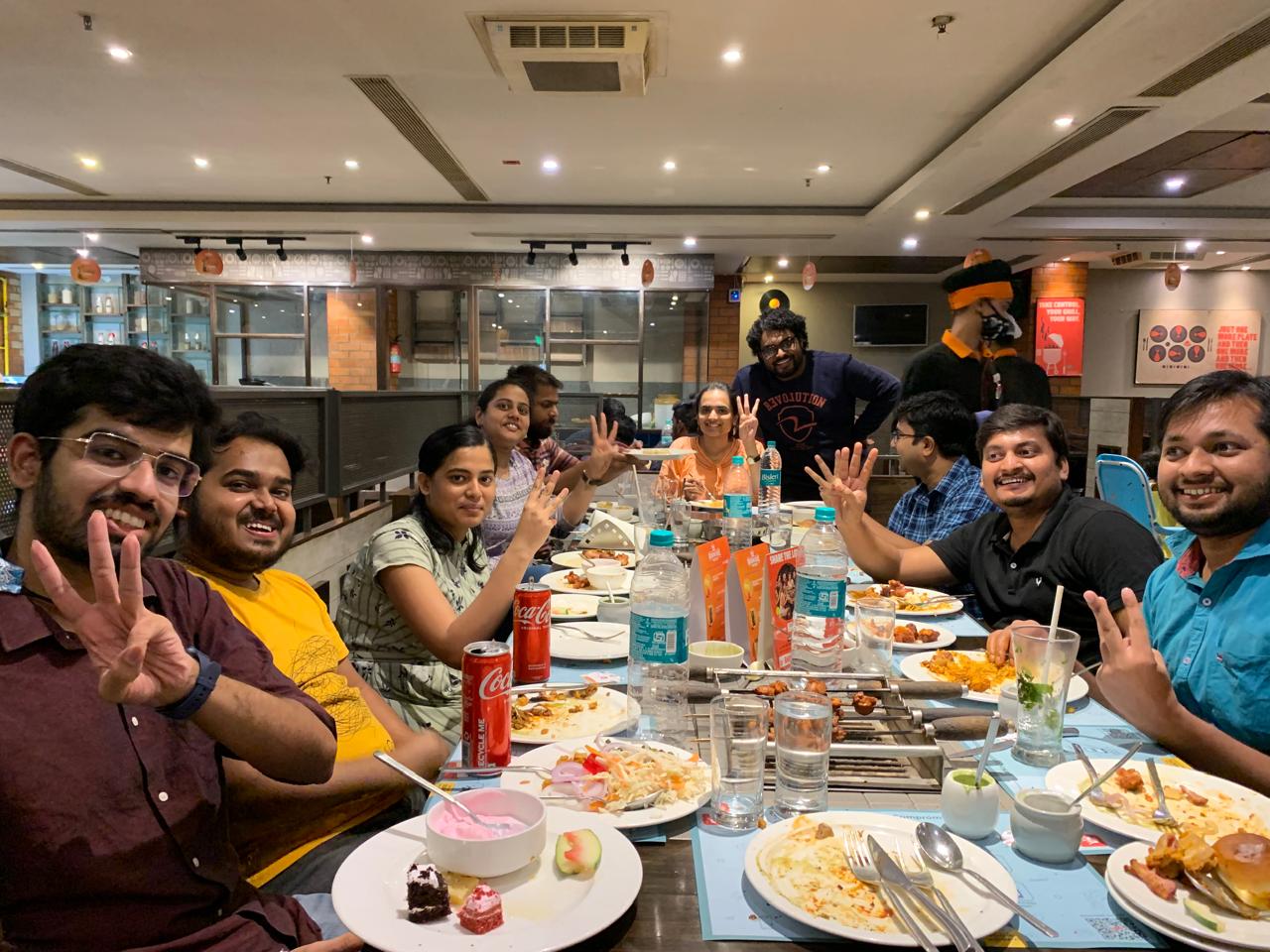 Celebration at Barbeque Nation following Supratim’s PhD defense (2024)